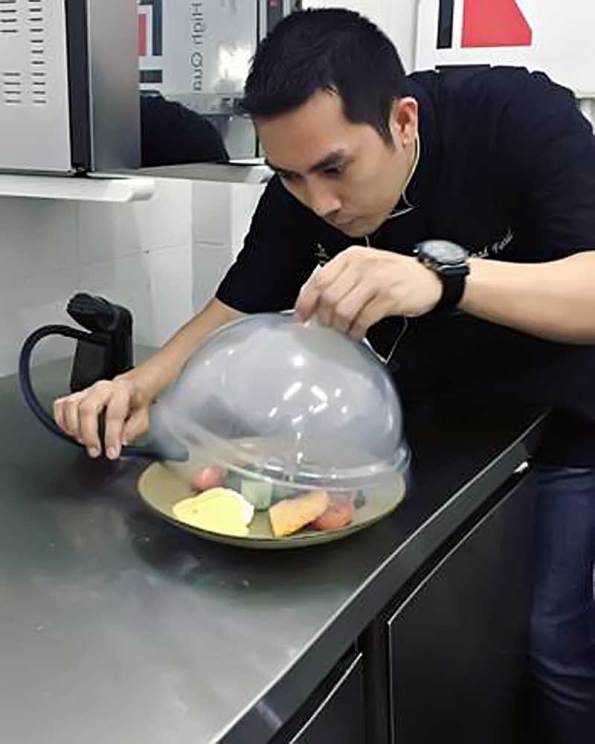 Hampir semua menu yang di ramu menggunakan mothode moderen salah satunya seperti metode sous Vide (su vid) cara unik ini dilakukan dengan memasukkan bahan ke dalam kantong kedap udara dengan suhu rendah.yang tentunya akan memberikan tekstur dan rasa yang berbeda.