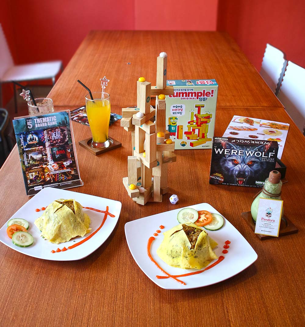 Pandora the board game Cafe saat ini memiliki Total 110 plus game, dengan kapasitas 80 orang di 3 lantai. Lantai 1 dan 3 untuk game umum, sedangkan lantai 2 untuk quite room.